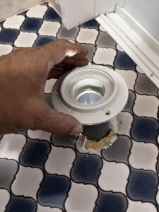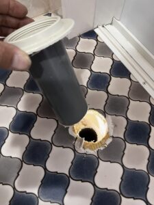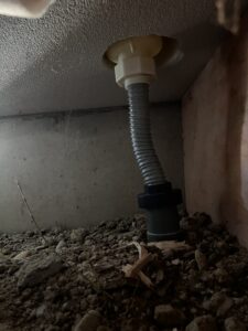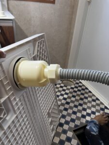 排水も、床に開けられた穴に直接突っ込むタイプ