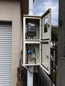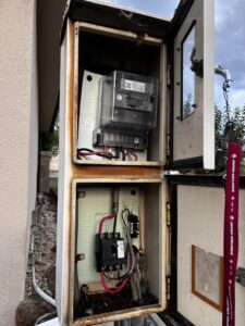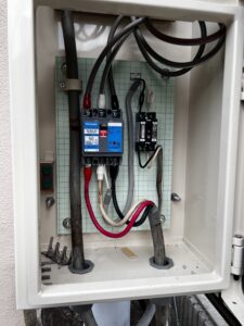 電気のメーターから、宅内の分電盤までの間にあるものです