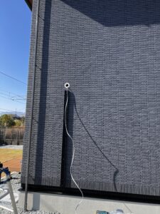 室内機を取り付け、さあ屋外の方へ
