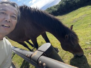 あまり興味のない私は、近くにいる野生の与那国馬と戯れておりました
