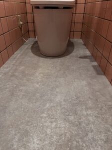青のマスキングテープで囲った土間排水口をしっかりとふさぎ