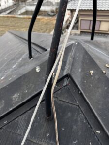アンテナ線のビニル被覆が劣化して外れている(雨が入っている)